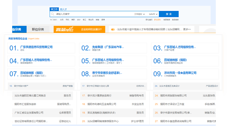 如果您所推廣的職位排名在前21名內(nèi),將會出現(xiàn)在首頁急聘職位區(qū)域,坐擁巨大的流量和點擊率,大幅提升您的招聘效果和企業(yè)知名度。